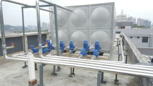 貴陽公安分局民警宿舍熱水和食堂熱水工程,食堂熱水工程:5匹空氣能兩臺+方形不銹鋼保溫水箱4.5噸。宿舍熱水工程:10匹空氣能4臺+方形不銹鋼保溫水箱18噸。