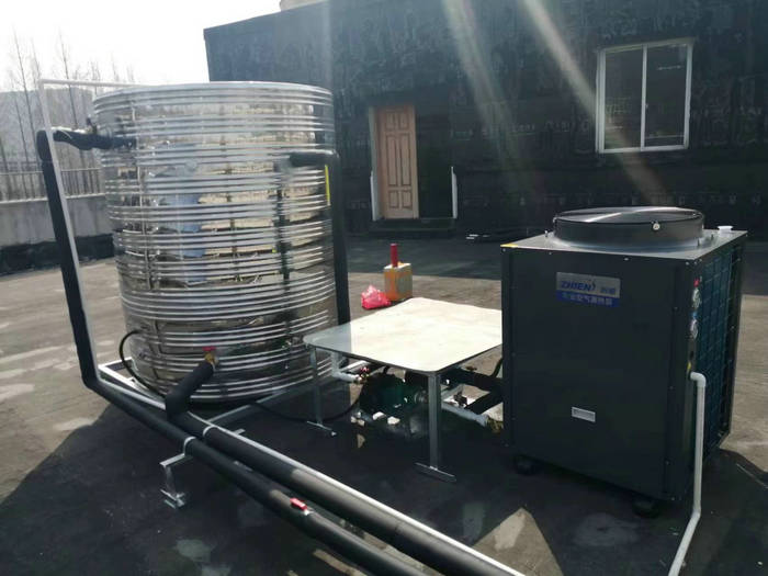 杭州康復(fù)醫(yī)院熱水系統(tǒng)采用了5P智恩空氣能熱泵熱水機(jī)+不銹鋼保溫水箱。主要設(shè)備有:1臺(tái)5匹智恩空氣能熱水機(jī)(ZN-KFDX-050Ⅱ)+2噸不銹鋼保溫水箱(內(nèi)膽304不銹鋼,外膽201不銹鋼,保溫厚度50MM)