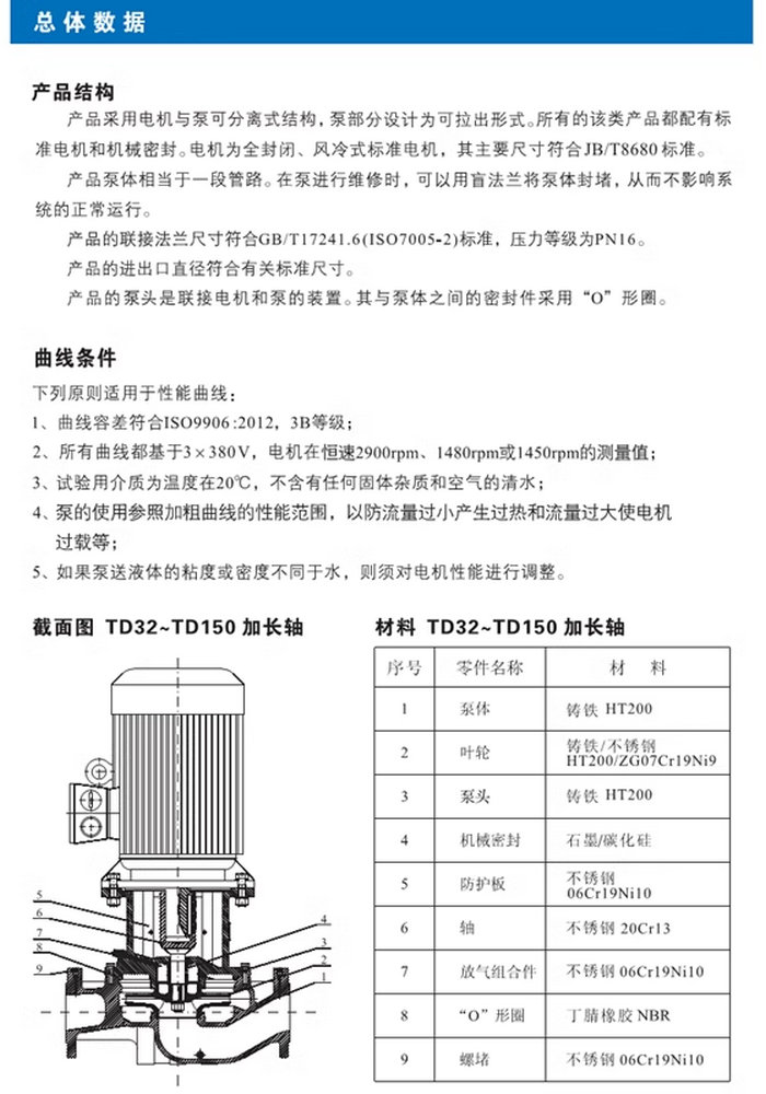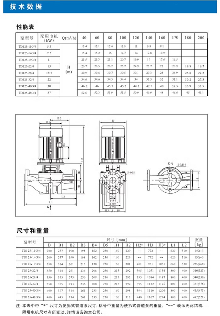 【南方】TD系列管道循環(huán)泵技術(shù)數(shù)據(jù)、性能參數(shù)、尺寸和重量