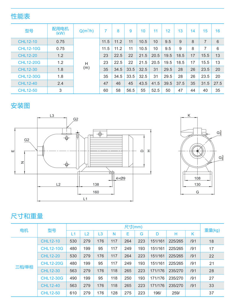 南方臥式不銹鋼多級離心泵CHL12-10/20/30/40/50