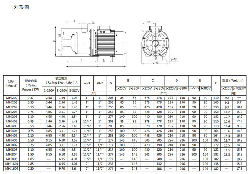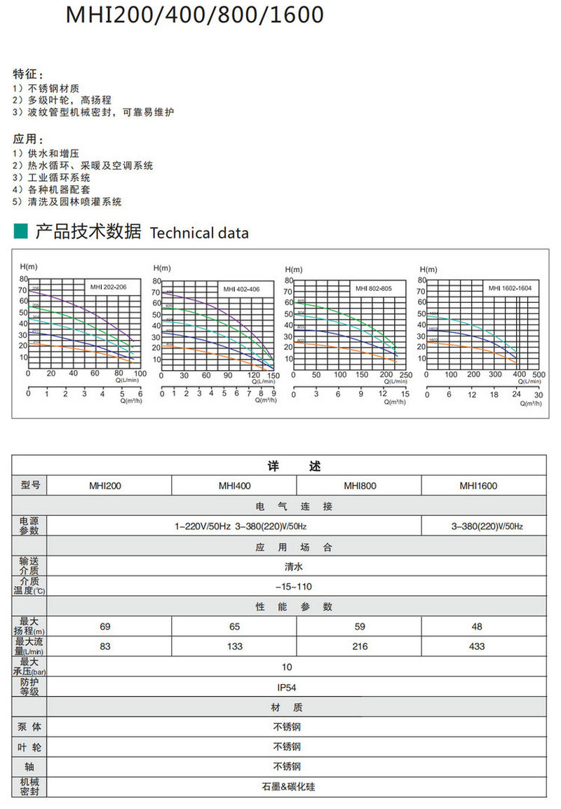 【新滬】熱水臥式多級離心泵MHI-202-206/402-406/802-805/1602-1604